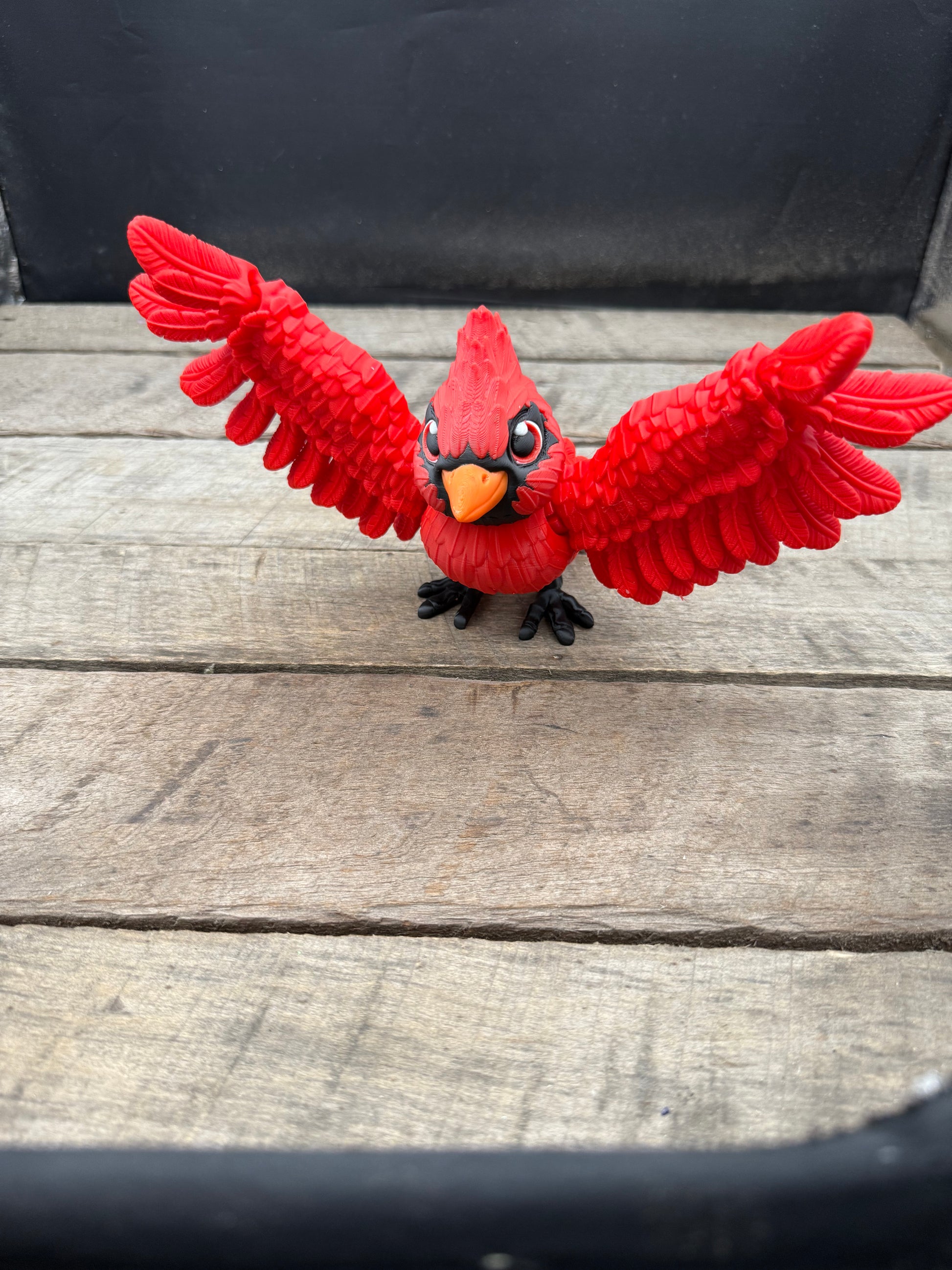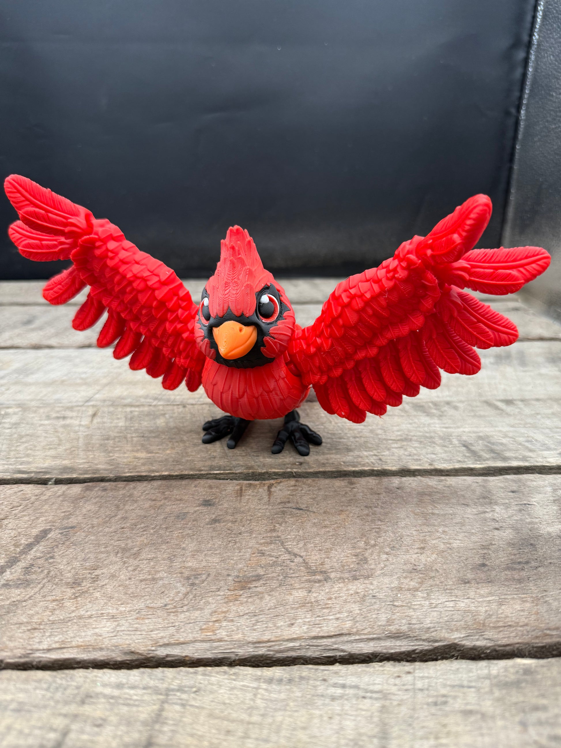 Bring vibrant life to your space with this 3D Printed Cardinal Red Bird. Fully articulated, its feathers, tail, wings, head, and feet move realistically, offering dynamic display possibilities. Crafted with colorful, detailed design, this striking piece captures the beauty of nature while adding a unique, interactive touch to your décor. Perfect for bird lovers and collectors seeking a captivating conversation starter.