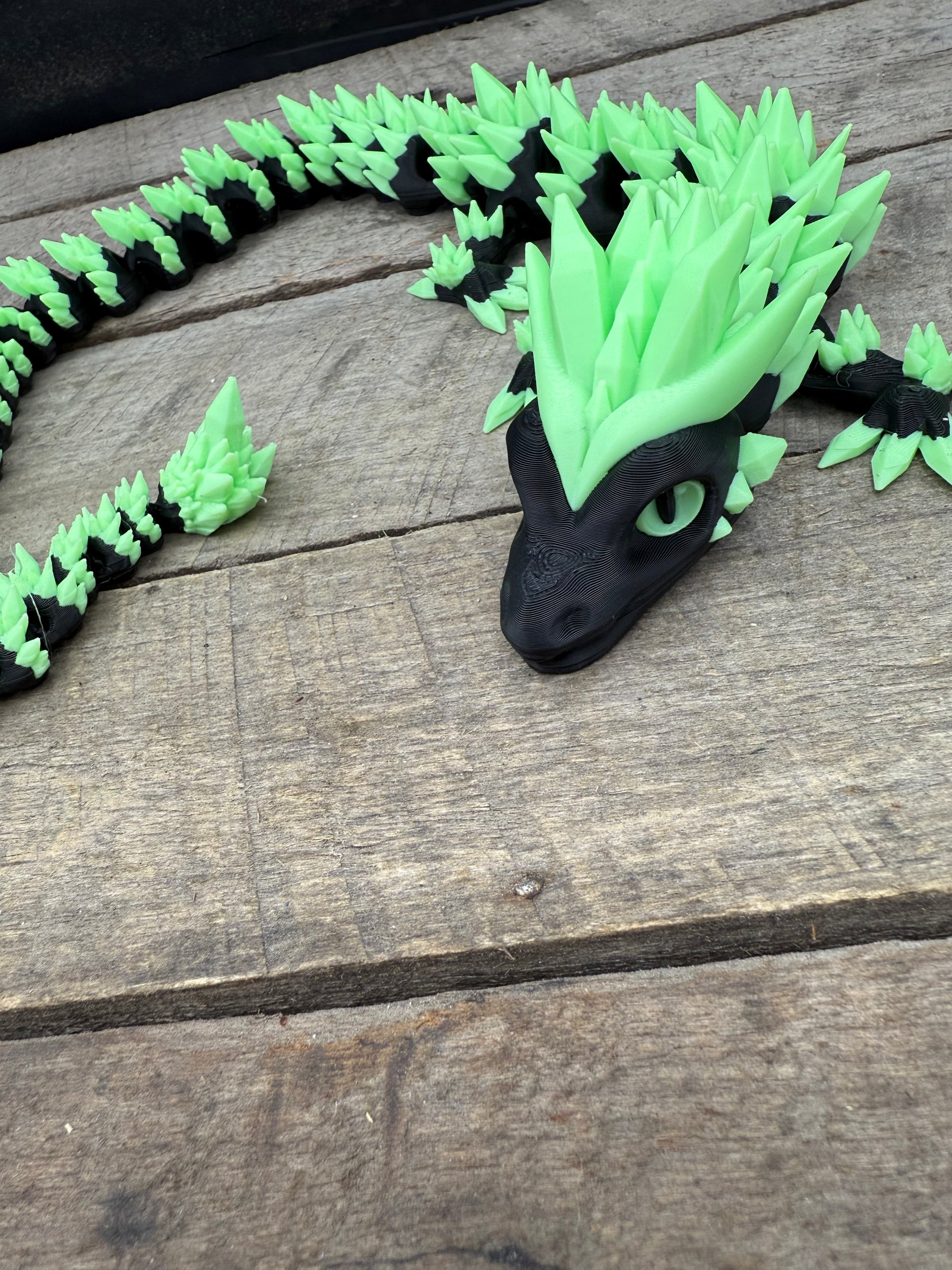Bring mythical magic to life with this 3D printed articulated dragon, featuring sparkling crystals for a dazzling effect. Customize your dragon by choosing your favorite colors, making it a unique and personal masterpiece. Its movable joints add dynamic charm, perfect for display or imaginative play. Elevate your collection with a dragon that’s truly your own.