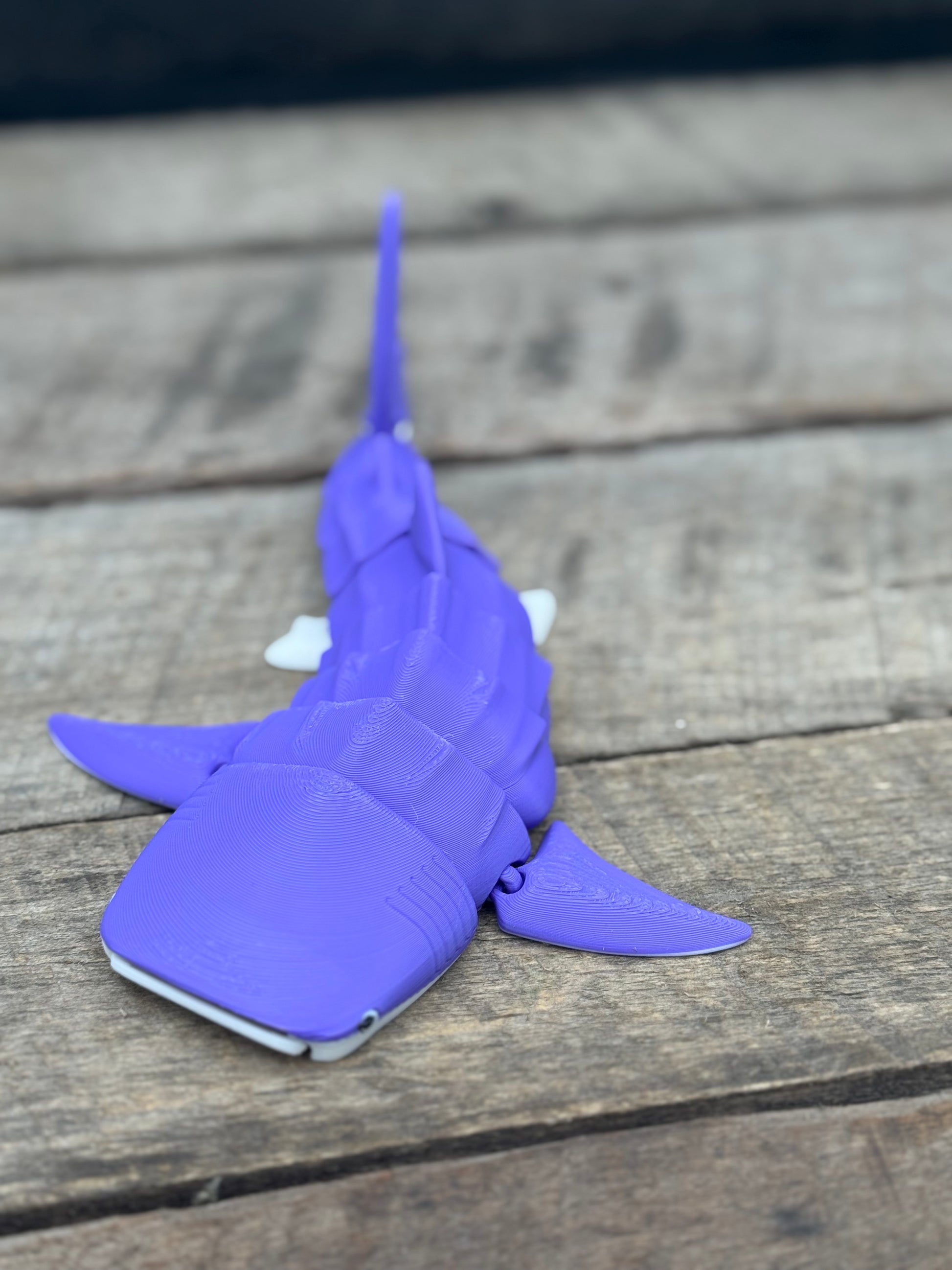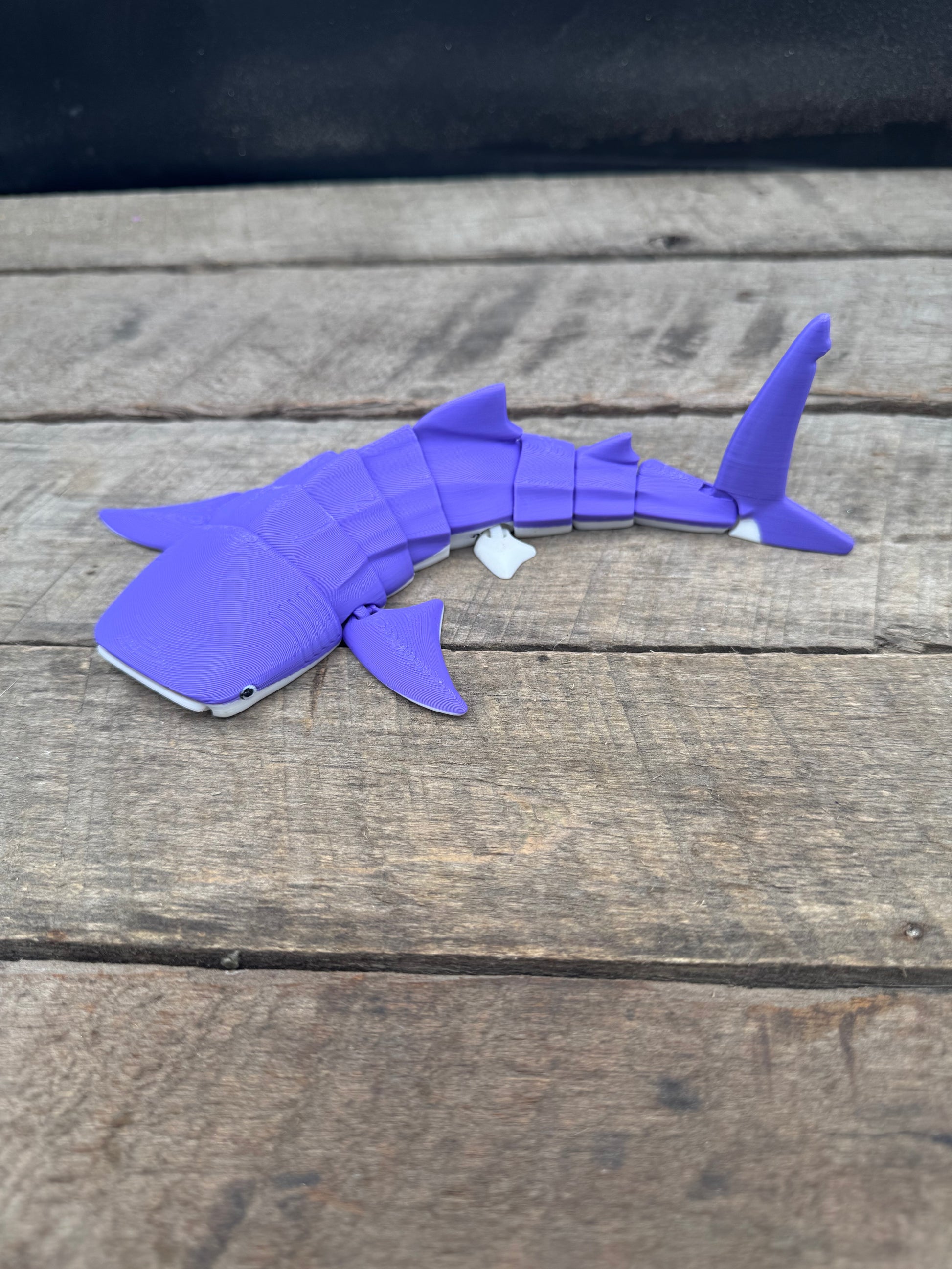 Bring home the charm of the ocean with this 3D printed flexi whale shark, designed to be both adorable and flexible. Choose your favorite color to make it uniquely yours. Perfect as a playful desk companion or a delightful gift, this whale shark adds personality and joy wherever it goes—your ideal pet without any fuss.