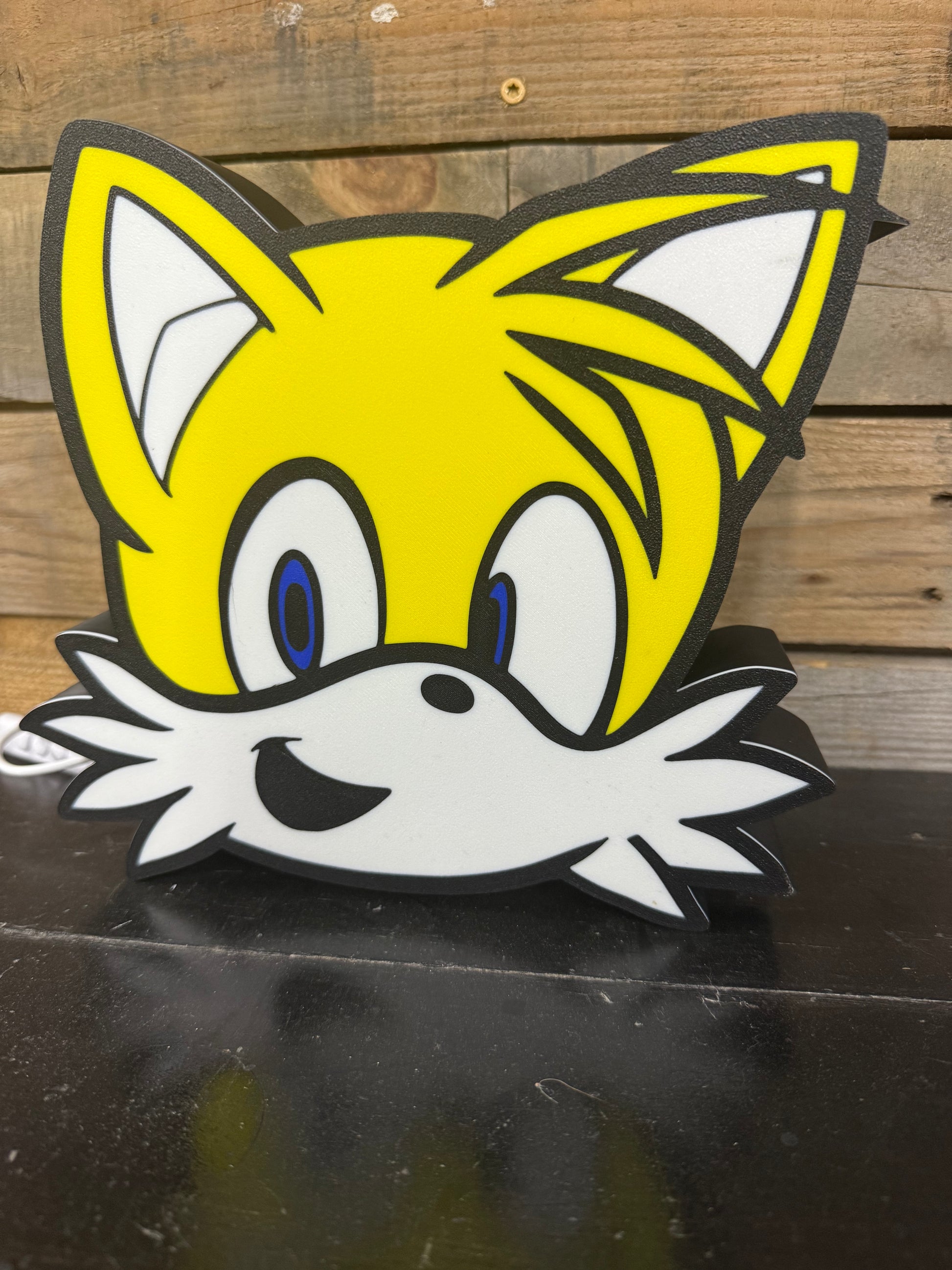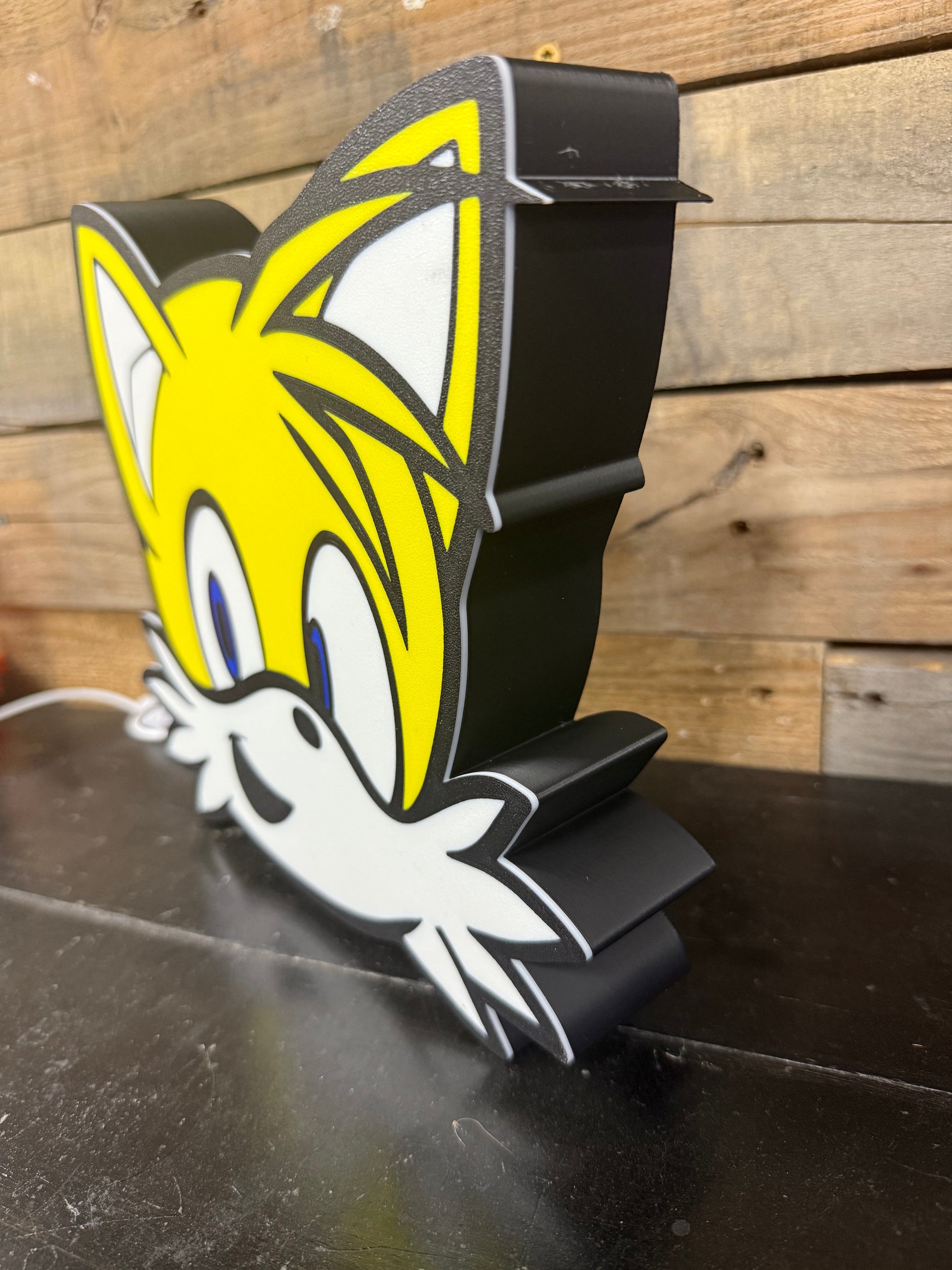 Bring your favorite Sonic the Hedgehog character to life with this 3D printed Tails Lightbox. Featuring dimmable lights, it creates the perfect ambiance for any room while showcasing detailed craftsmanship. Ideal for fans and collectors, this unique lightbox adds a playful yet stylish touch to your space.